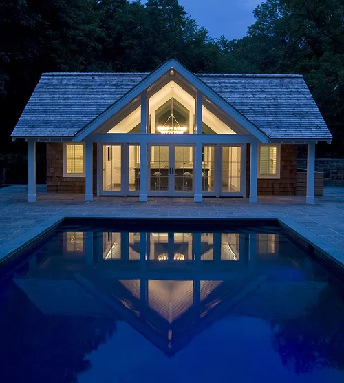 Master Planning for estates including site planning, accessory building design–pool houses, garages for car collectors, stables, potting sheds, smoking sheds, outdoor rooms.